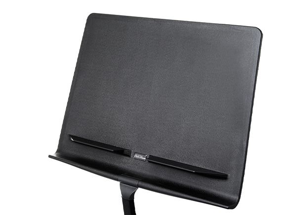 The injection-moulded tray is designed to withstand demanding use. It will flex and return to shape if knocked, offering long-term durability in busy educational or performance settings. The aluminium stem adds rigidity without adding unnecessary weight, minimising sway and supporting heavier folders with ease.