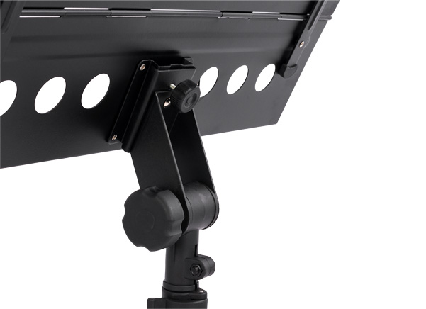 Finished in a matte black powder coating, it blends seamlessly with your instrument of choice and resists scuffs and scratches, offering long-term value. Three buckle clip clamps enable smooth height adjustments, while an ergonomic head rotator supports quick, precise angle changes.