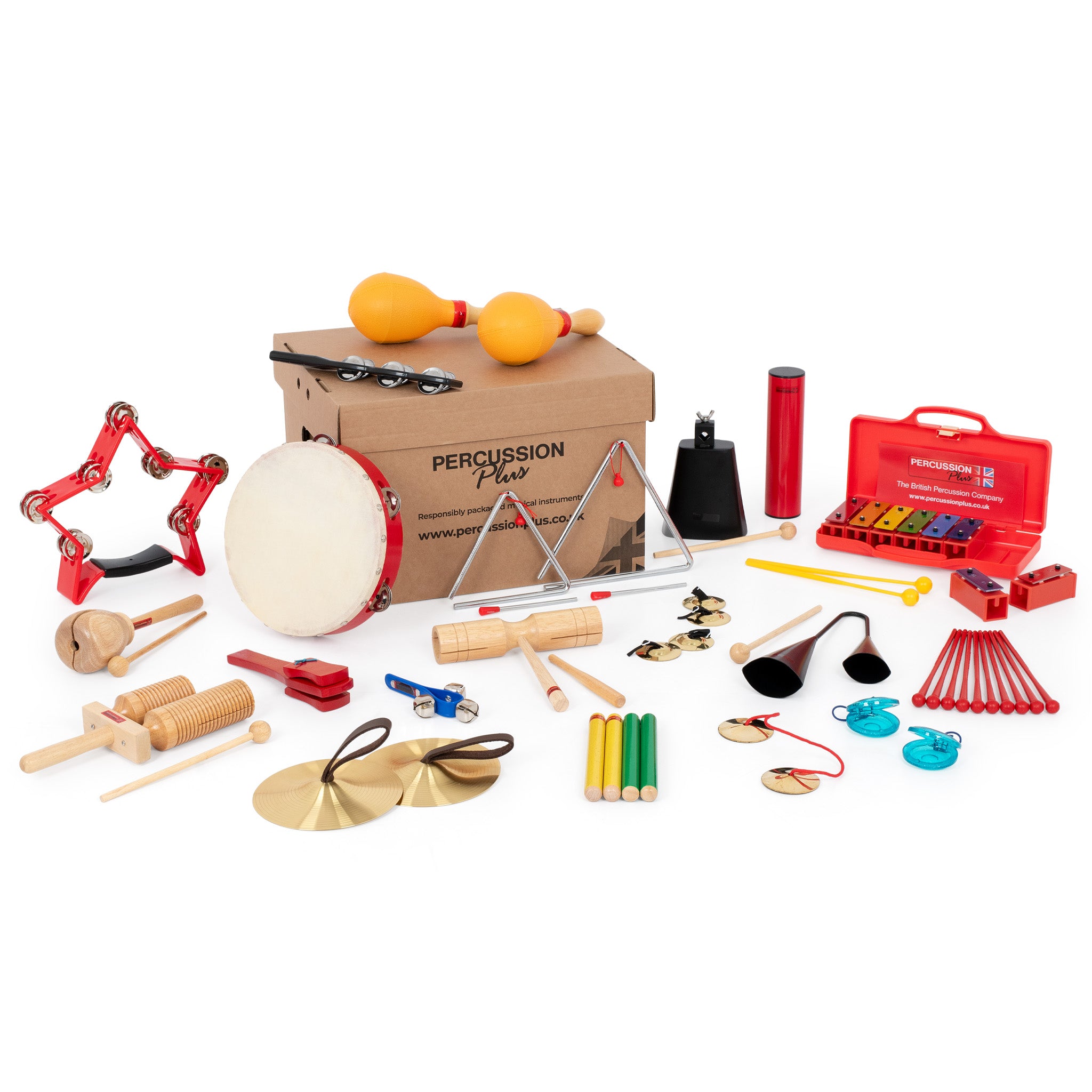 Perfect for educational use, the Percussion Plus classroom pack contains a carefully curated collection of instruments, made to accommodate a whole class of up to 30 students. Ideal for KS1 and KS2, the class pack is filled with simple to use, fun and colourful percussion instruments, with no previous experience required. These instruments are straight forward to teach and captivating, colourful and tactile for the students. To ensure organisation and convenience, they are supplied in a sturdy storage box, allowing for easy clean up at the end of class.